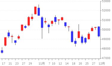 週初は利上げ警戒で急落しましたが、週半ばは米利下げ観測を背景に半導体・AI株が急反発し、指数は再び5万円台を回復しました。
