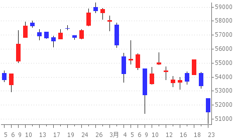 ■【3月23日(月)】大幅続落 ▲1857円(-3.48%)