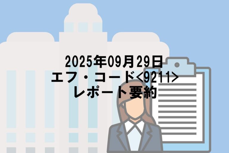 2025年09月29日に掲載されたエフ・コード<9211>のレポートを要約しました。