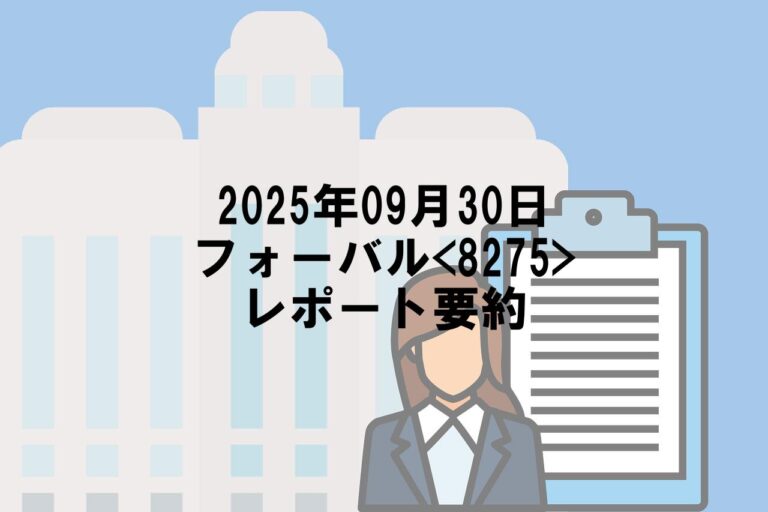 2025年09月30日に掲載されたフォーバル<8275>のレポートを要約しました。