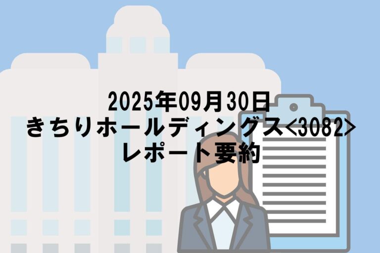 2025年09月30日に掲載されたきちりホールディングス<3082>のレポートを要約しました。