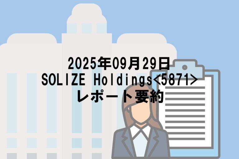 2025年09月29日に掲載されたSOLIZE Holdings<5871>のレポートを要約しました。